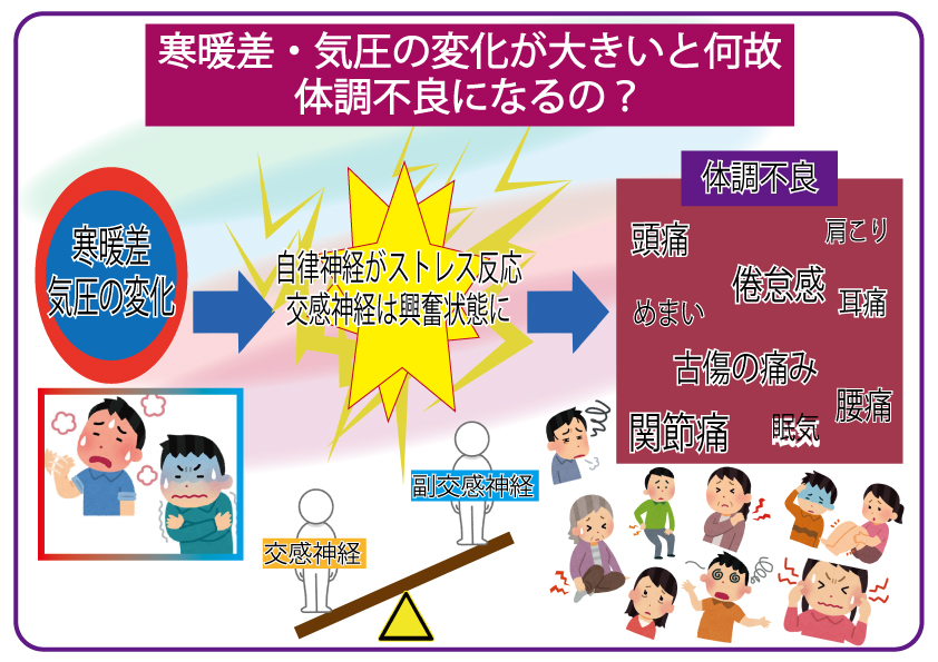 また血行不良による関節痛も出やすい季節です。